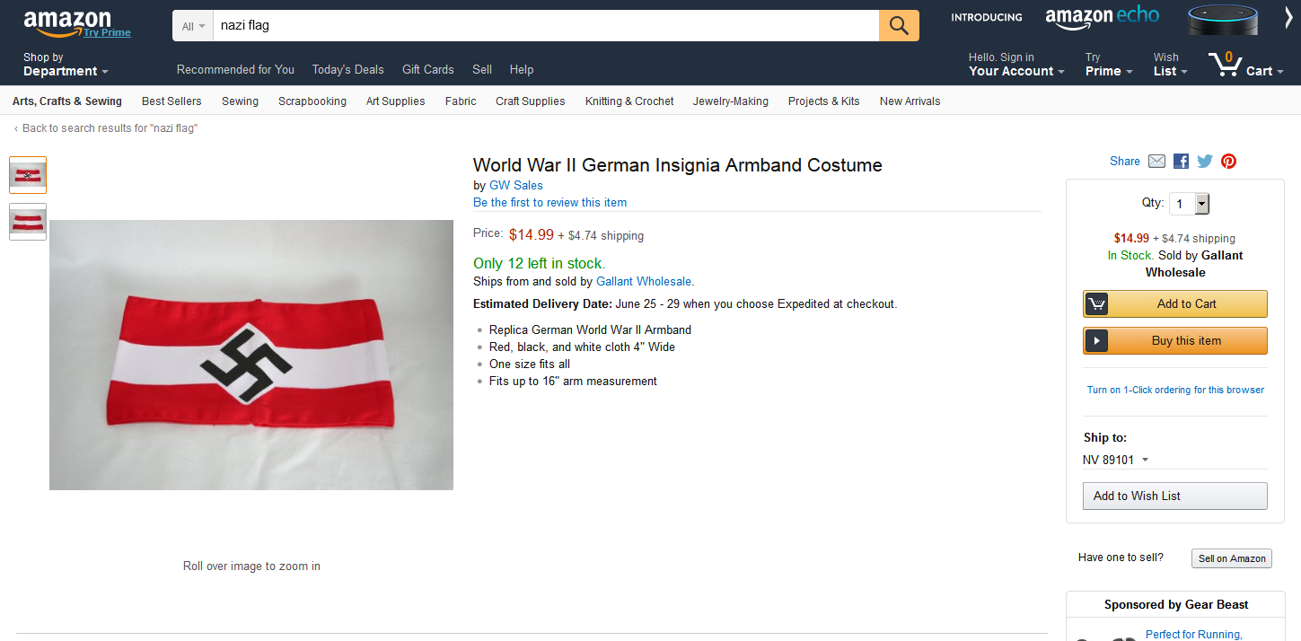 By refusing to sell Confederate battle flag (or Naval Jack) memorabilia on moral grounds, eBay and Amazon are saying they morally approve of anything they do sell.